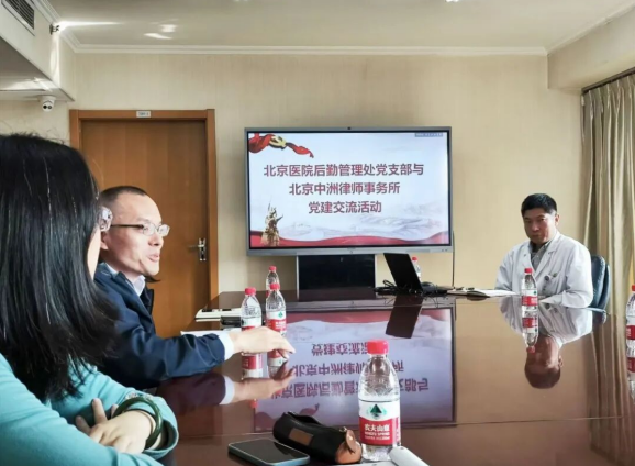中洲律所党支部一行人抵达北京医院后,受到了北京医院后勤党支部的热情接待。活动开始后,北京医院后勤党支部刘书记为来访者做了详细的介绍。刘书记不仅回顾了北京医院悠久的历史和发展历程,还特别强调了后勤党支部在党建工作中的重要作用和取得的成绩。随后,中洲党支部任书记也向大家介绍了中洲党支部及中洲律所的基本情况。
